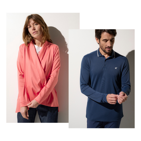 - Geavanceerde technologie in elk detail: De innovatieve weeftechniek en het lage gewicht van onze stoffen zorgen voor een intrinsieke UV bescherming zonder in te boeten aan lichtheid of draagcomfort.