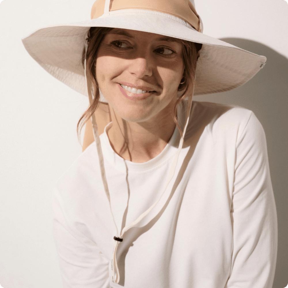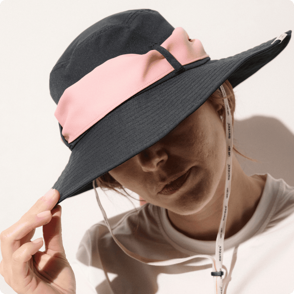 Dankzij de twee lusjes aan de zijkant bovenop kun je je hoed personaliseren met een van onze Nuvées uv-werende sjaals.