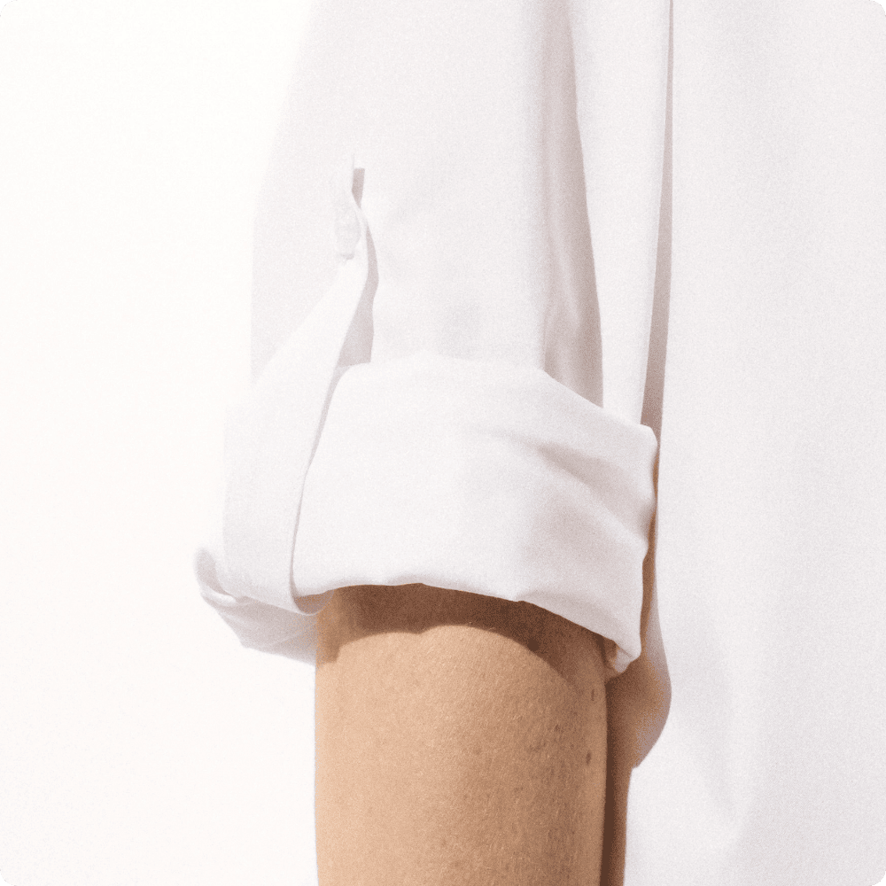 Voor optimale bescherming tegen de zon in uw nek en hals, kan de kraag omhoog worden gezet en op zijn plaats worden gehouden met een ingenieus magneetje. De mouwen zijn zo ontworpen dat u ze stijlvol kunt op- en afrollen. De blouse heeft ook een borstzakje.