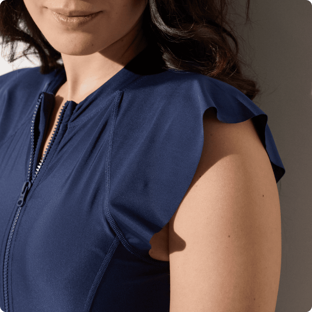 Dit badpak beschermt effectief uw schouders en decolleté tegen de zon en geeft een vrouwelijke touch aan uw silhouet.