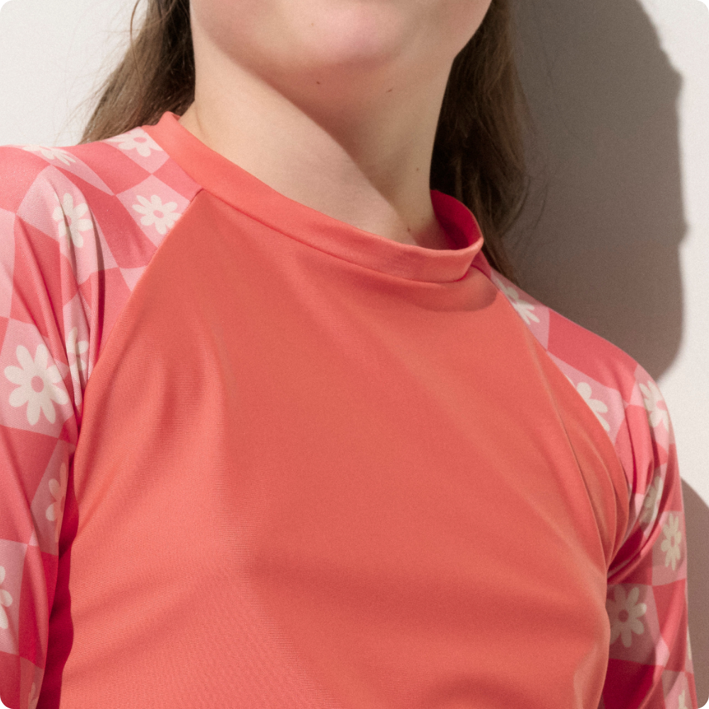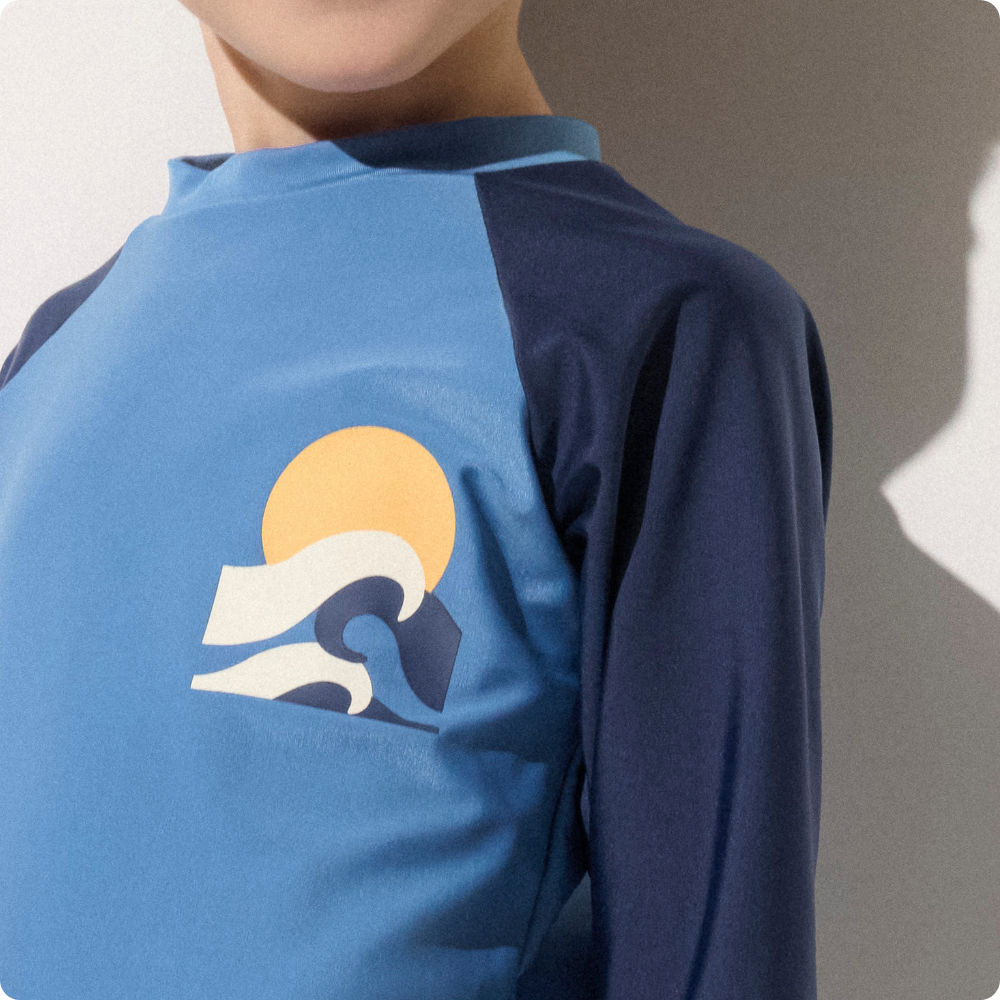 Een zwemshirt dat ideaal is om de gevoelige huid van uw kind te beschermen tijdens zonnige dagen op het strand of in het zwembad.
