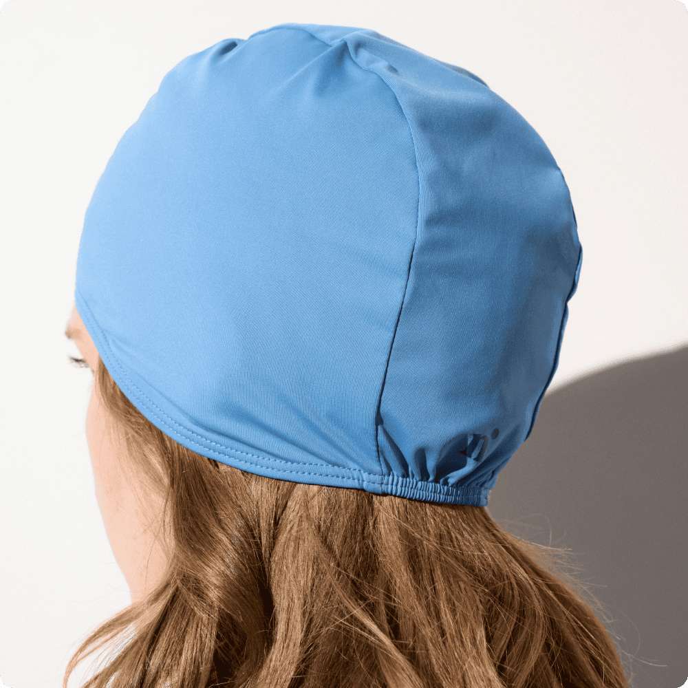 Deze badmuts beschermt uw hoofdhuid en oren effectief tegen de zon tijdens het zwemmen.