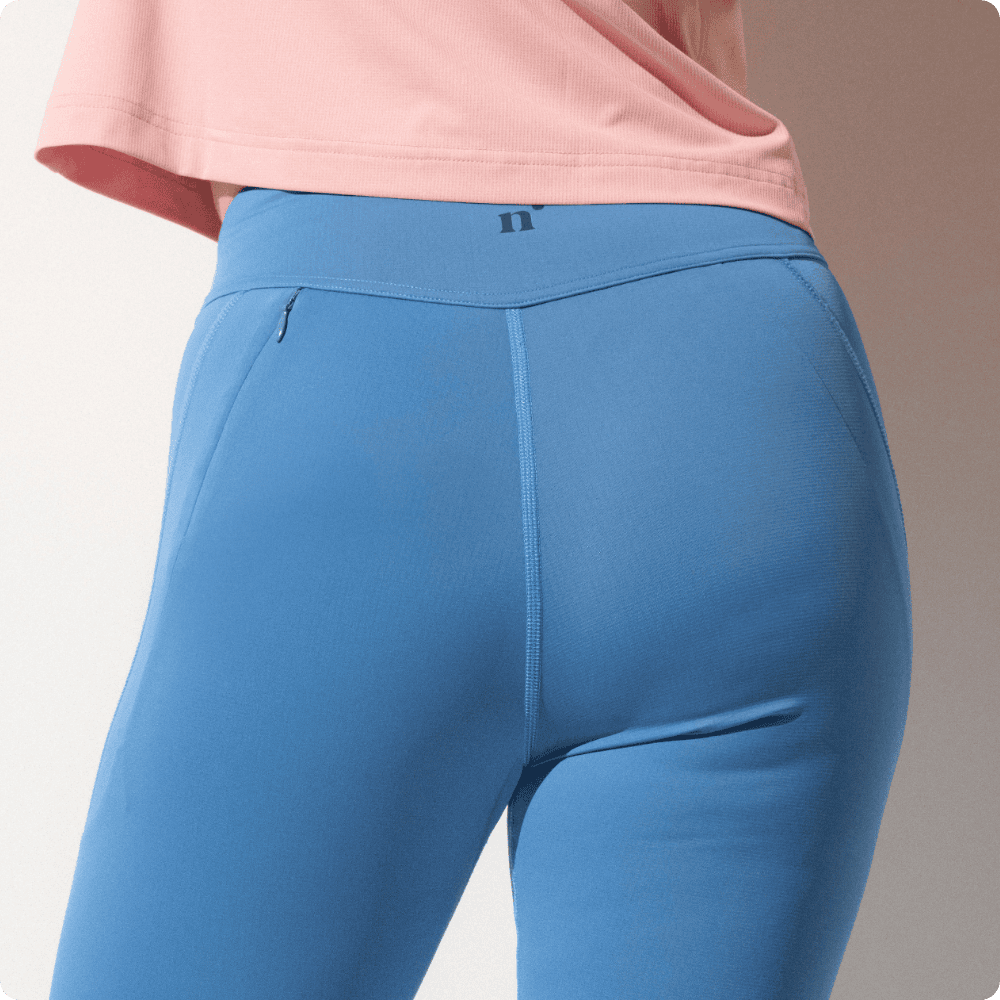 Een high-waist legging, perfect voor hardlopen, wandelen of yoga, met ondersteuning en functionaliteit om zorgeloos in de zon te bewegen.